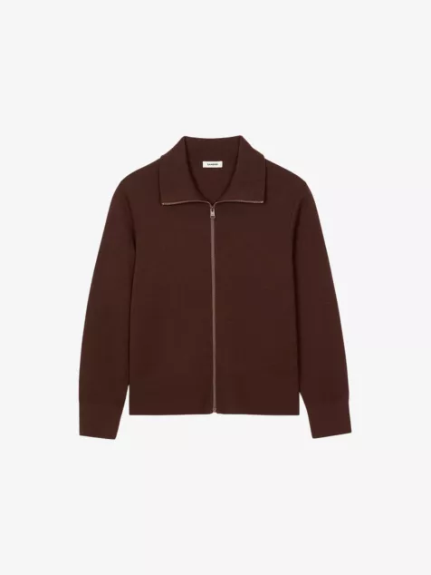 SANDRO High-Neck Long-Sleeves Wool Trucker Jacket