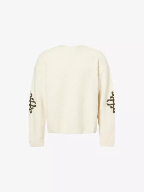 • Crewneck, long sleeves, all-over waffle texture, emblem logo at sleeves, straight hem